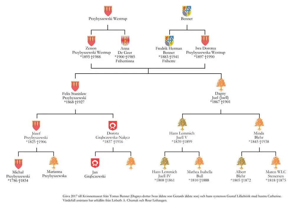 Familietre for Dagny Juels barn Zenon og IwaUnder kan du lese slektstavlen til Dagny Juels to barn.1/1Iwa og Zenons familietre Åpne eller lukk bildetekst