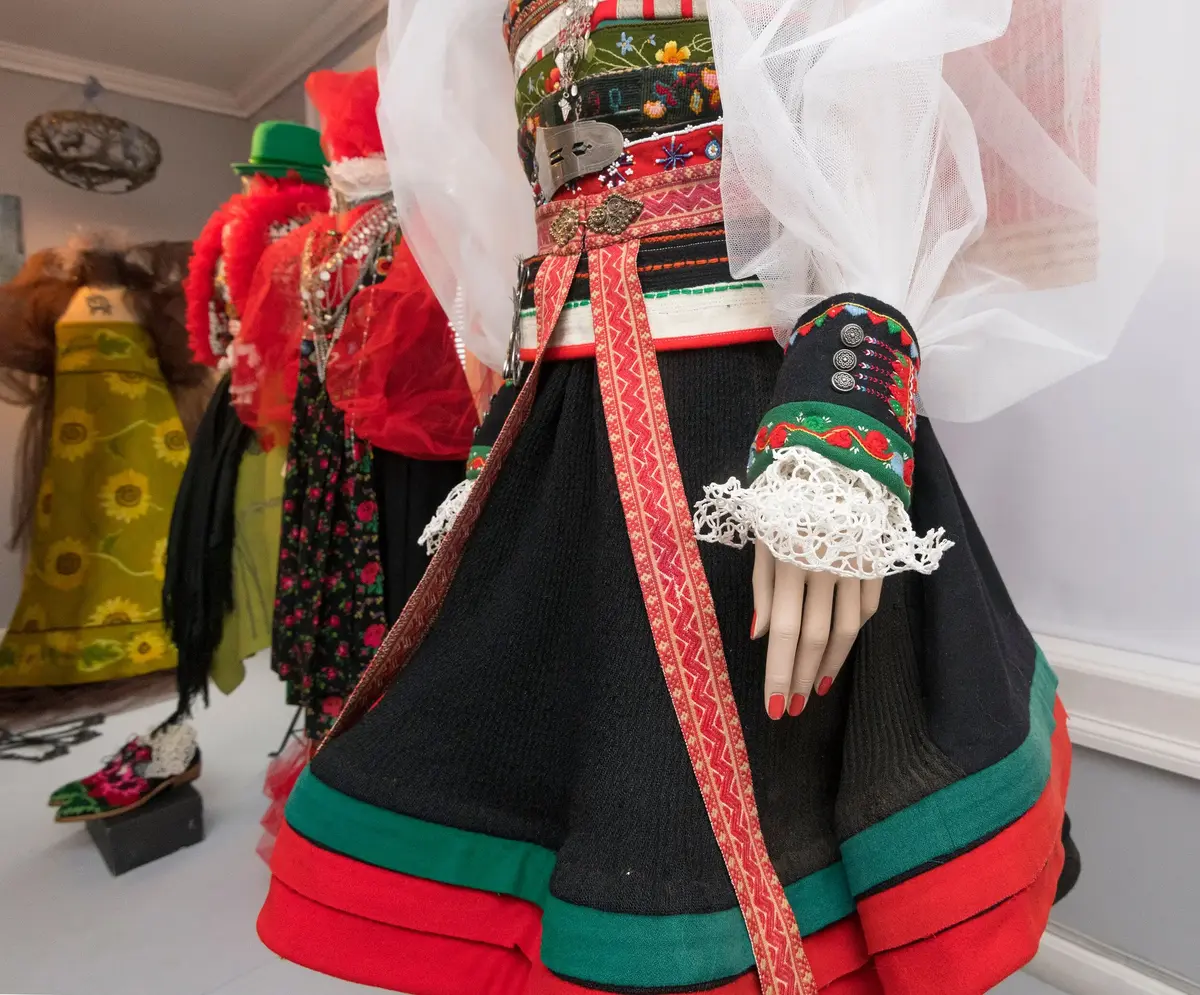Å få leke meg som dette gir meg stor glede, men også ærefrykt. For å visualisere og forsterke det hele har jeg invitert med meg gjesteutstillere, de har alle gitt meg frie tøyler. Håndarbeid er lånt ut fra private samlinger i Kongsvingerregionen.