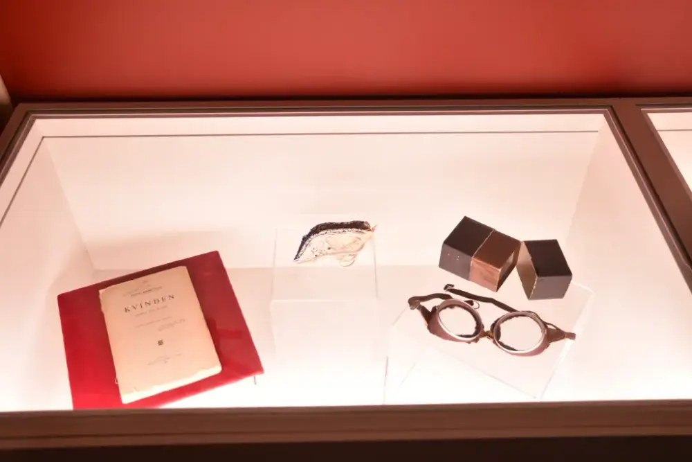 Driving glasses and case: Given by orghild Nøkleby, an active member of the Oslo Kvinnelige Handelstands Forening (Oslo Womens' Business Society). Driving glasses represent the freedom of movement that came with