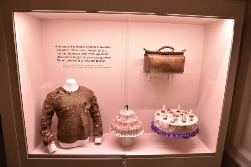 Silk shoe: Used for binding feet in China, brought to Norway by a missionary. Then used by the feminist group Kvinnefronten to highlight the opressive practice of feet binding, and for educational purposes in schools in Oslo.