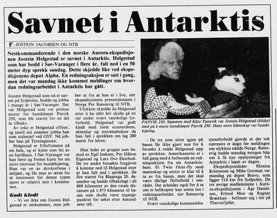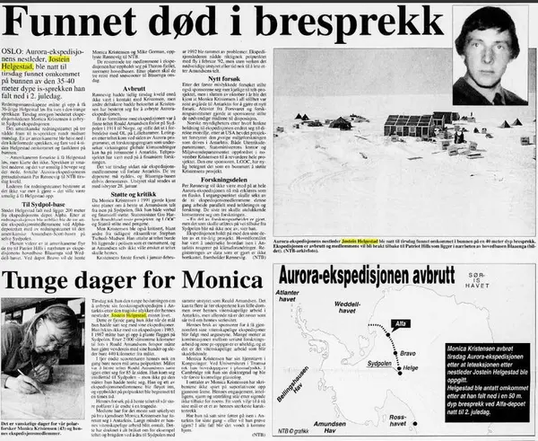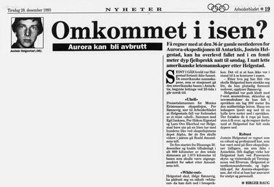 Det siste fikk Auroraprogrammet erfare under Sydpol-ekspedisjonen i romjula 1993. Nestleder for ekspedisjonen Jostein Helgestad (36) falt ned i en dyp bresprekk og omkom natt til 2. juledag, bare 200 meter fra leirstedet. Tragedien var et faktum.
