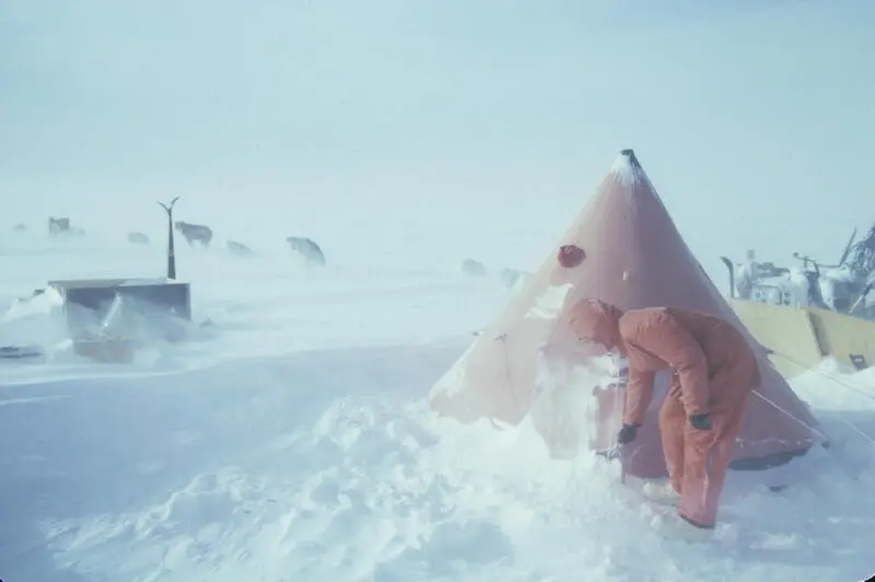 Pyramideteltet i storm og 44 minusgrader på Sydpolplatået. Monica Kristensen - 3/4