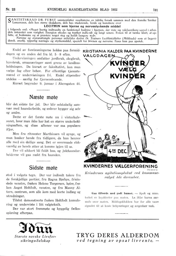 Faksimile fra OKHFs eget tidsskrift Kvindelig Handelsstands Blad fra 1922.