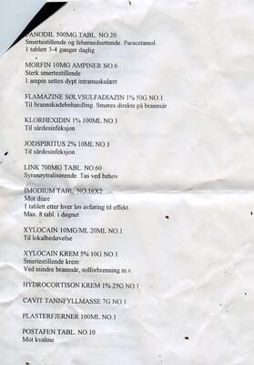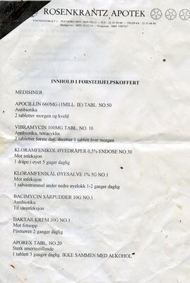 Innholdet i medisinkofferten på M/S AURORA. Dette skulle rekke for både ekspedisjons-medlemmene og mannskapet ombord. - 2/4