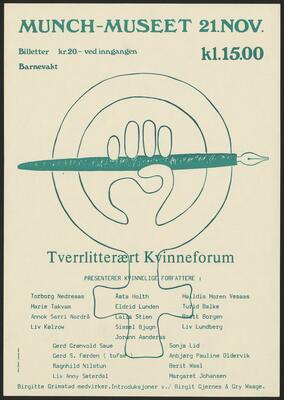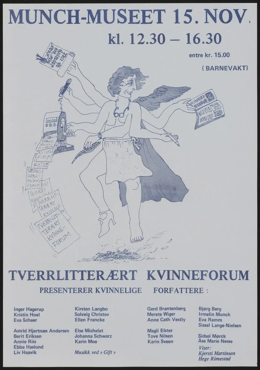 Tverrlitterært kvinneforum var en av mange grupper i Kvinnepolitisk aksjon. De la møtene sine til Kvinnehuset når det var mulig og hadde et sterkt nordisk samarbeid. De ble pådrivere til å få flere kvinner nominert til Nobels litteraturpris og dannet grupper for skriveglade kvinner. De store arrangementene på Munchmuseet trengte både plakater og hefter og da var det SFINXA som stod for det.