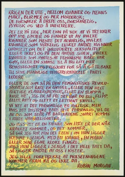 Under kan du se et utvalg av Inge Ås sin private plakatsamling fra perioden. Flere av dem har hun laget selv eller sammen med andre fra kvinneverkstedet SFINXA. Noen av plakatene er samlet inn fra reiser, festivaler og aksjoner i både inn- og utland.